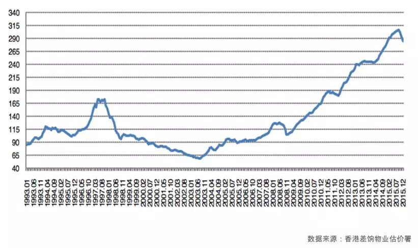 1993~2015年香港房價(jià)指數(shù)月度變化(1999=100)