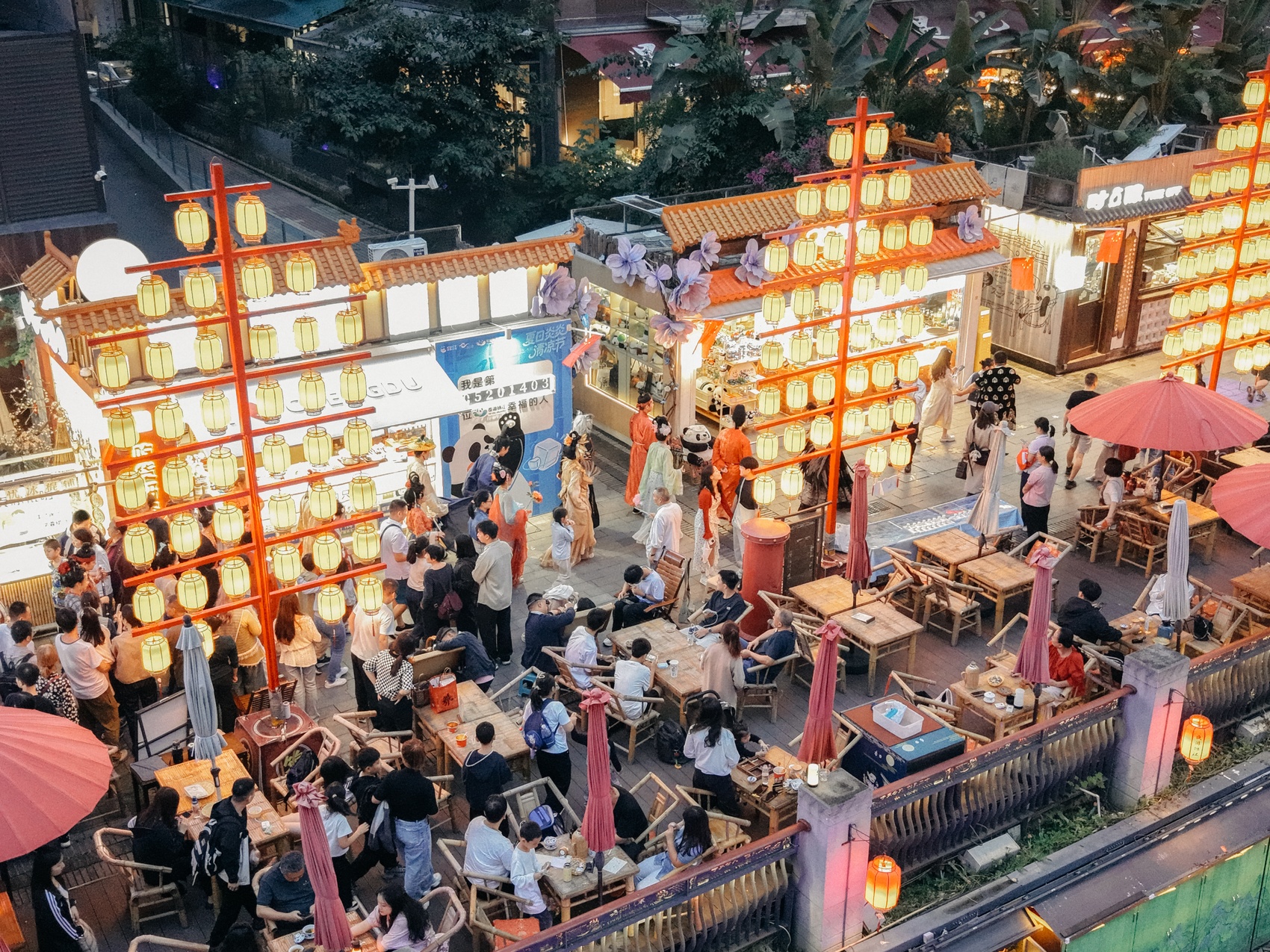 每當(dāng)夜幕垂下,成都錦江東門(mén)碼頭便頃刻間華麗“變身”:燈火通明的街市沿河岸鋪開(kāi);古彩戲法、非遺手作、國(guó)風(fēng)文創(chuàng)等老物件“煥”新上場(chǎng);才華橫溢的“李白”擺起了小攤兒;游船上的人們戴著MR眼鏡“重返”千年之前……錦江河岸化身為穿越時(shí)空的舞臺(tái),以沉浸式演繹、水岸聯(lián)動(dòng)體驗(yàn)的創(chuàng)新形式,再現(xiàn)“門(mén)泊東吳萬(wàn)里船”的繁華市井場(chǎng)面,成為消費(fèi)者全新的“游樂(lè)場(chǎng)”。