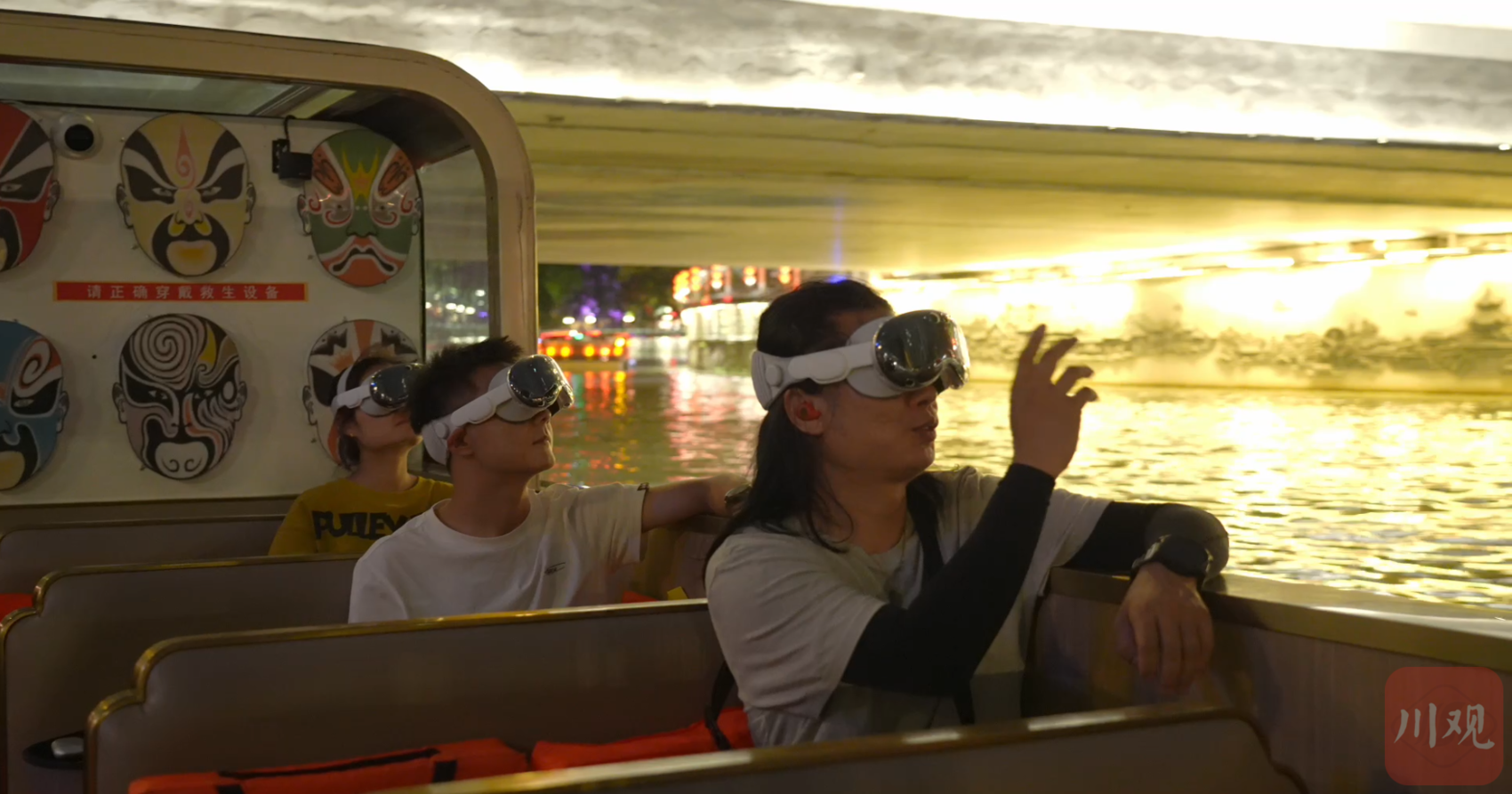 作為“夜游錦江”項(xiàng)目的創(chuàng)意消費(fèi)場(chǎng)景,剛剛過(guò)去的國(guó)慶中秋雙節(jié)假期里,升級(jí)后的MR數(shù)字游船煥新上市。游船在行進(jìn)中,可以通過(guò)相關(guān)設(shè)備實(shí)時(shí)感應(yīng)船行位置,其定制的MR眼鏡,還能通過(guò)“空間定位+追蹤技術(shù)”,將游船與岸上風(fēng)光打造成虛實(shí)融合的夢(mèng)幻空間,體驗(yàn)十分獨(dú)特。