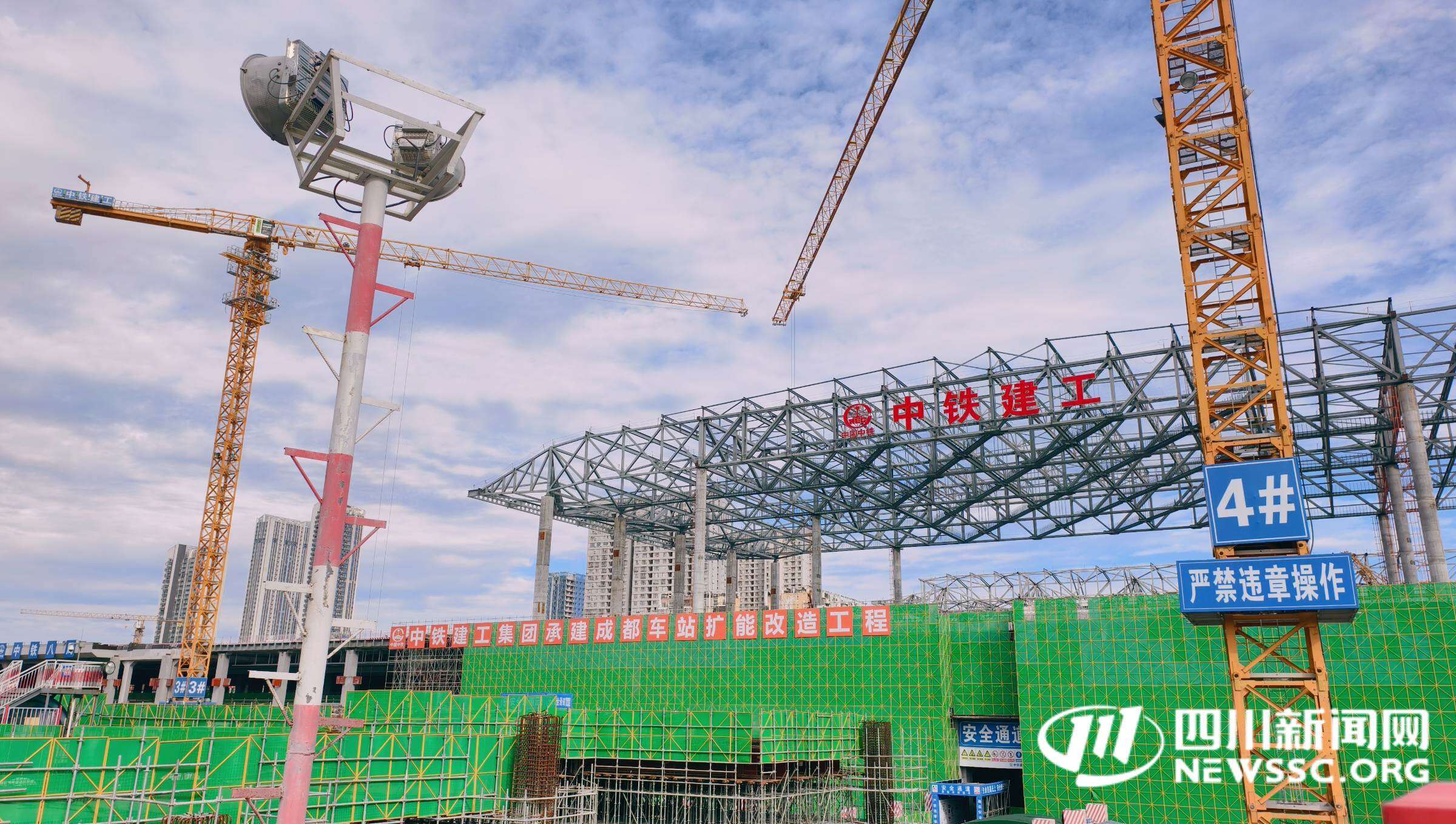 走進成都火車站擴能改造工程項目現(xiàn)場,高聳的塔吊有序運轉,工人們各司其職、干勁十足,在繁忙的工地中,由鋼架搭建而成的“芙蓉花”骨架格外引人注目。