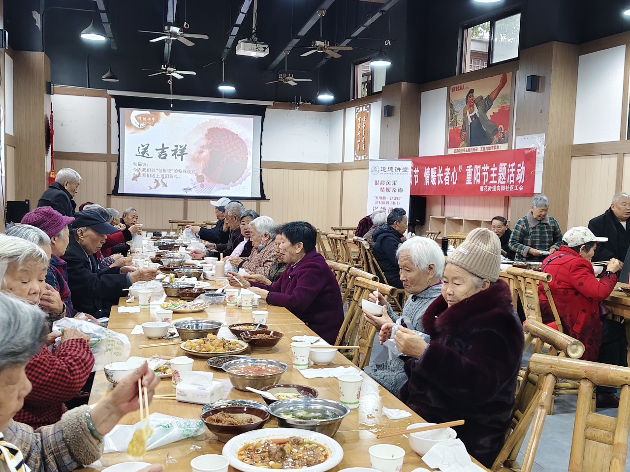 老人們在向陽社區(qū)食堂用餐。社區(qū)供圖