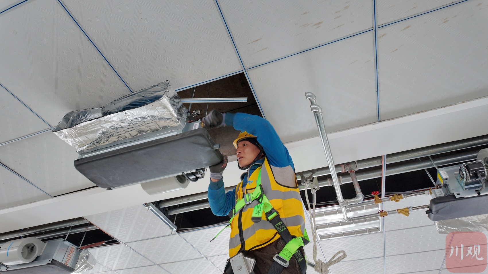 在越西縣住房和城鄉(xiāng)建設(shè)局工作人員王卓揚(yáng)和韓幫遠(yuǎn)帶領(lǐng)下,記者還來到位于越西中學(xué)男生宿舍的施工現(xiàn)場。多名工人正在開展管道切割和安裝作業(yè)?!皩W(xué)生們上課期間就是我們的施工期?!表n幫遠(yuǎn)說。在樓層上方,長長的管道已布設(shè)完畢,且用橡塑棉進(jìn)行了包裹,可以有效保溫。走進(jìn)一間宿舍,門的上方就是供暖設(shè)備的終端——風(fēng)機(jī)盤,未來暖氣將通過這里送入房間。