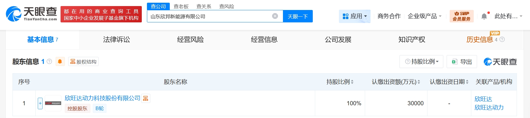 每經(jīng)AI快訊,天眼查App顯示,近日,山東欣邦新能源有限公司成立,法定代表人為葉智林,注冊(cè)資本3億元人民幣,經(jīng)營(yíng)范圍含新興能源技術(shù)研發(fā)、電池制造、電池銷售、電動(dòng)汽車充電基礎(chǔ)設(shè)施運(yùn)營(yíng)、輸配電及控制設(shè)備制造、智能輸配電及控制設(shè)備銷售、光伏設(shè)備及元器件銷售等。股東信息顯示,該公司由欣旺達(dá)動(dòng)力科技股份有限公司全資持股。
