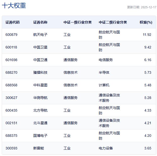 中證衛(wèi)星產(chǎn)業(yè)指數(shù)主要權(quán)重股
