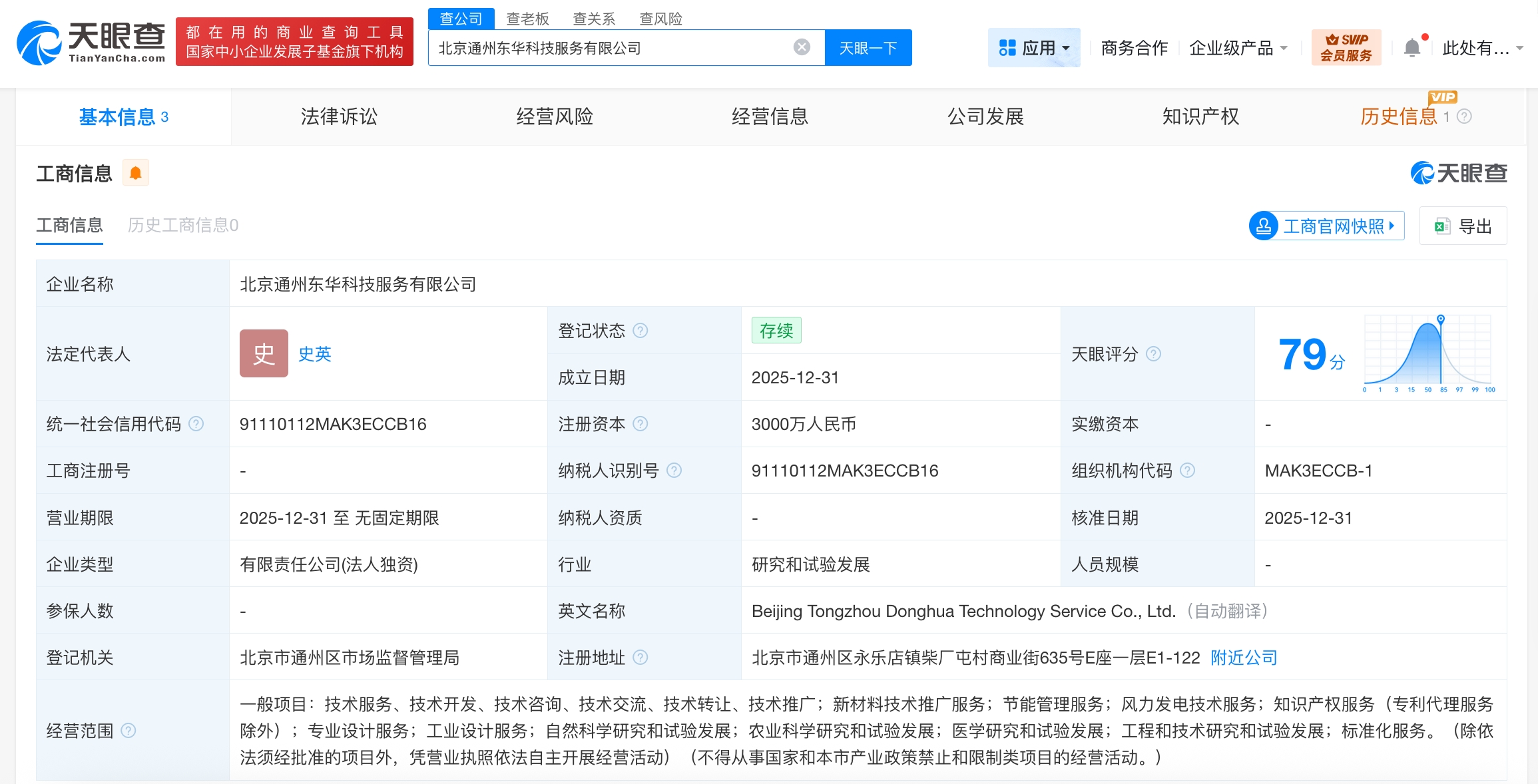 每經AI快訊,天眼查App顯示,近日,北京通州東華科技服務有限公司成立,法定代表人為史英,注冊資本3000萬元人民幣,經營范圍含新材料技術推廣服務、節(jié)能管理服務、風力發(fā)電技術服務、知識產權服務、專業(yè)設計服務、工業(yè)設計服務、自然科學研究和試驗發(fā)展、農業(yè)科學研究和試驗發(fā)展、工程和技術研究和試驗發(fā)展等。股東信息顯示,該公司由東華軟件(002065)全資持股。