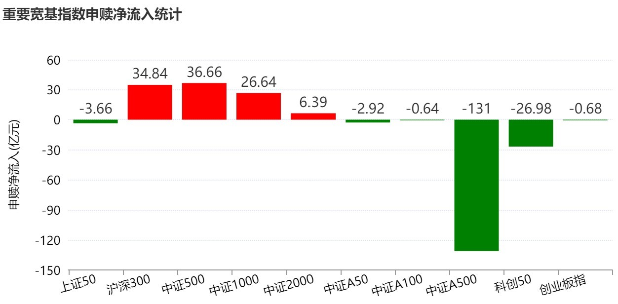 細(xì)分來看,主要寬基指數(shù)整體資金申贖統(tǒng)計顯示,本周中證A500凈流出131億元。