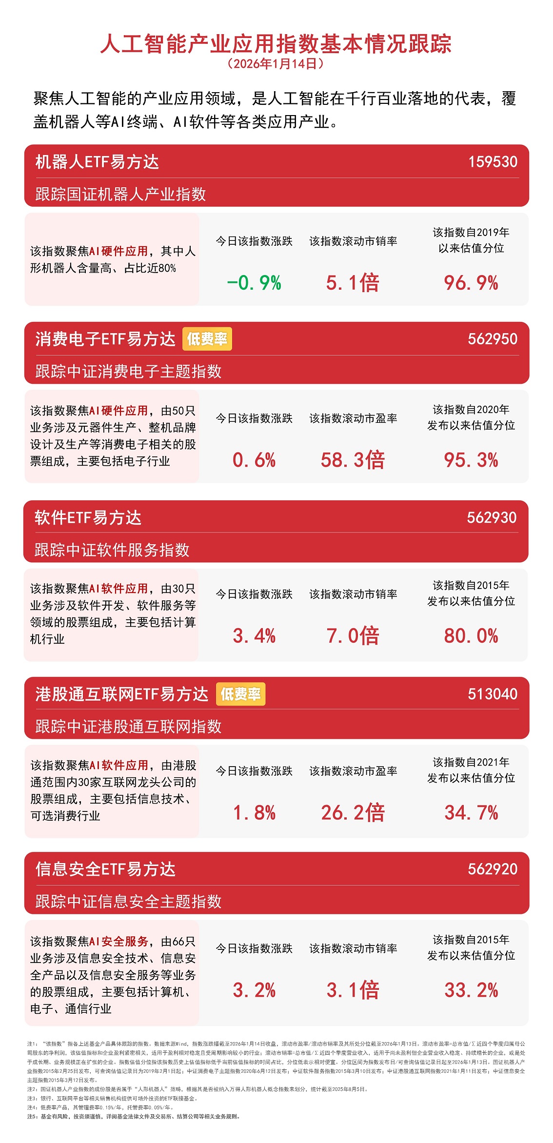 國證機器人產(chǎn)業(yè)指數(shù)聚焦人形機器人本體和核心零部件,覆蓋三花智控、領(lǐng)益智造等人形機器人零部件產(chǎn)業(yè)鏈公司,合計占比約80%,領(lǐng)跑同類其他指數(shù)。機器人ETF易方達(159530)是目前跟蹤該指數(shù)規(guī)模第一的ETF產(chǎn)品,可助力投資者便捷布局人形機器人產(chǎn)業(yè)鏈核心企業(yè)。