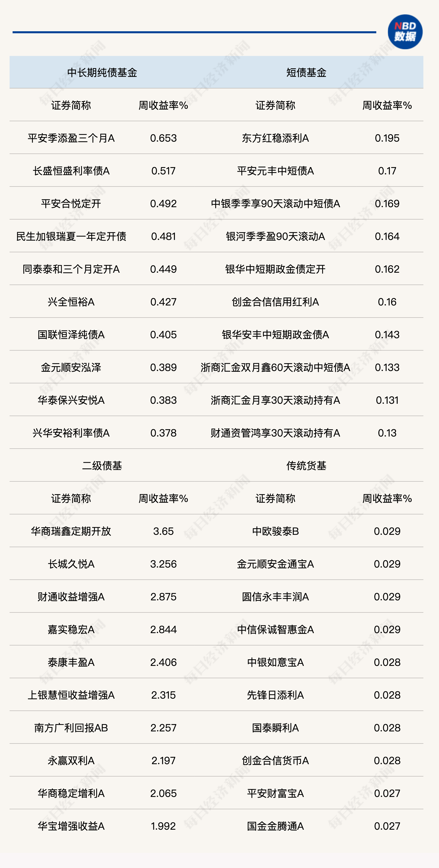 在業(yè)內(nèi)看來,長債資產(chǎn)的供給不足進(jìn)一步推升了短債的交易性價值,而長債資產(chǎn)的配置性需求仍需釋放。不過,就公募基金表現(xiàn)來看,上周中長期純債基金整體的業(yè)績修復(fù)要強于短債基金。