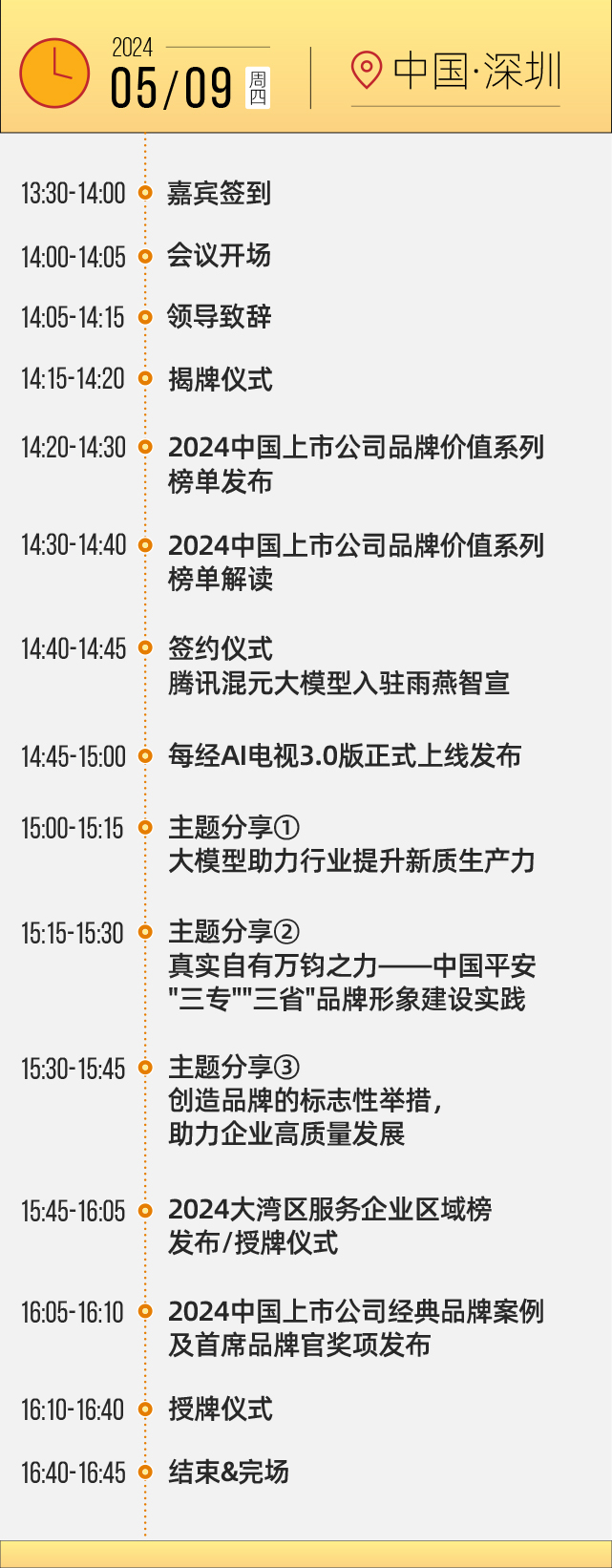 本屆發(fā)布會(huì)亮點(diǎn)紛呈,除了隆重發(fā)布“2024中國(guó)上市公司品牌價(jià)值榜”系列榜單,還新增發(fā)布“2024粵港澳大灣區(qū)上市公司品牌價(jià)值榜TOP100”,敬請(qǐng)關(guān)注。